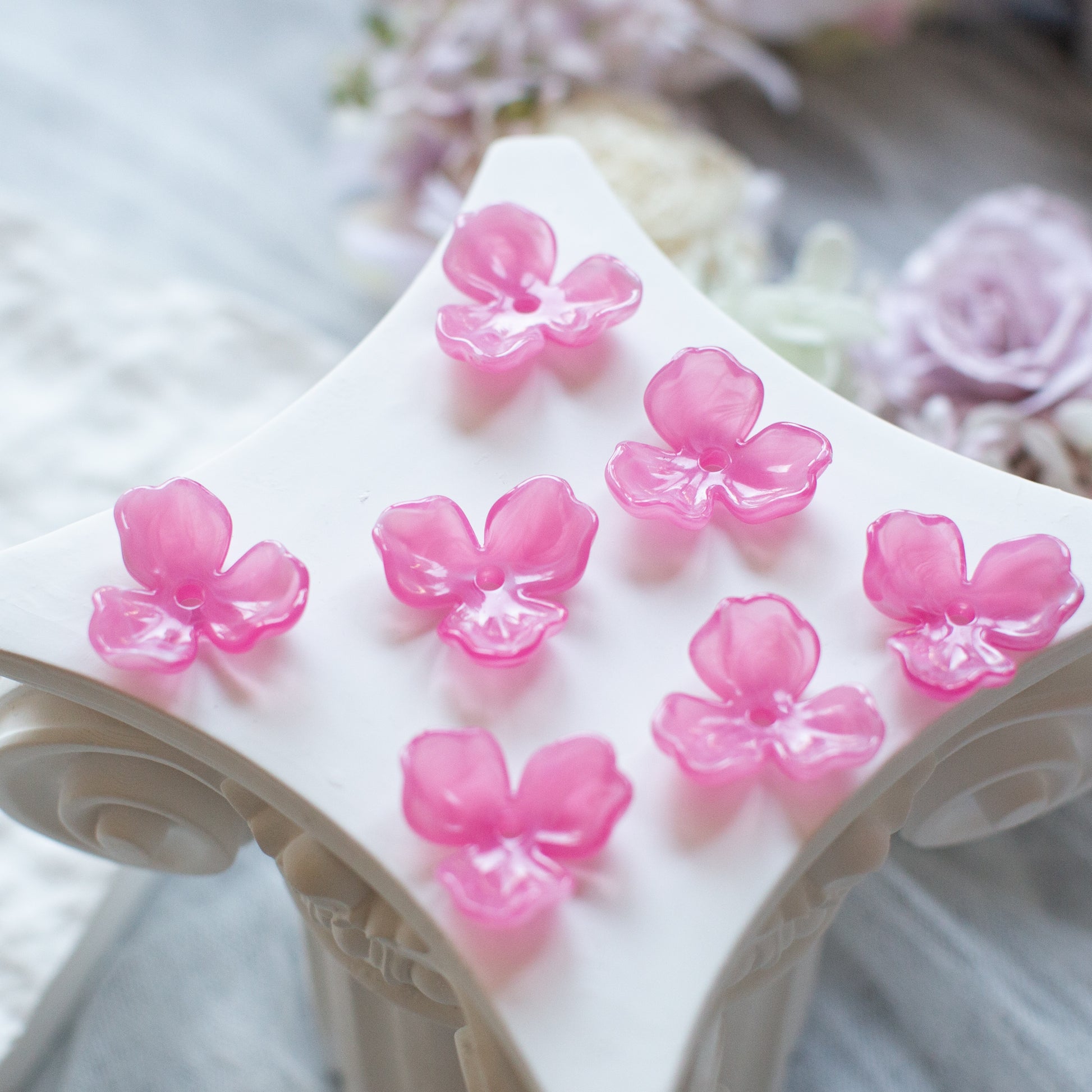 *6個* 樹脂フラワービーズ ピンク フラワーチャーム フラワーカボション PS-0058