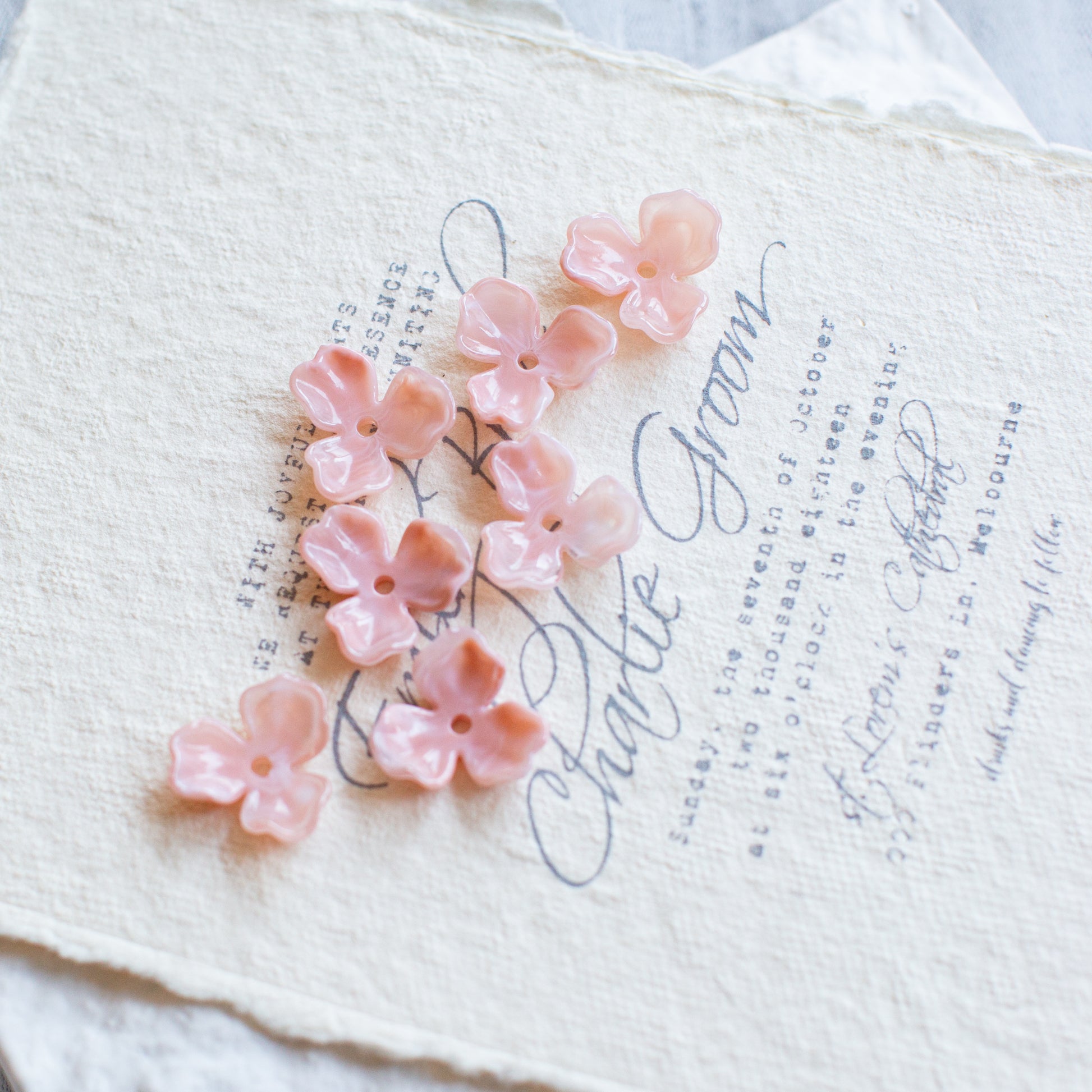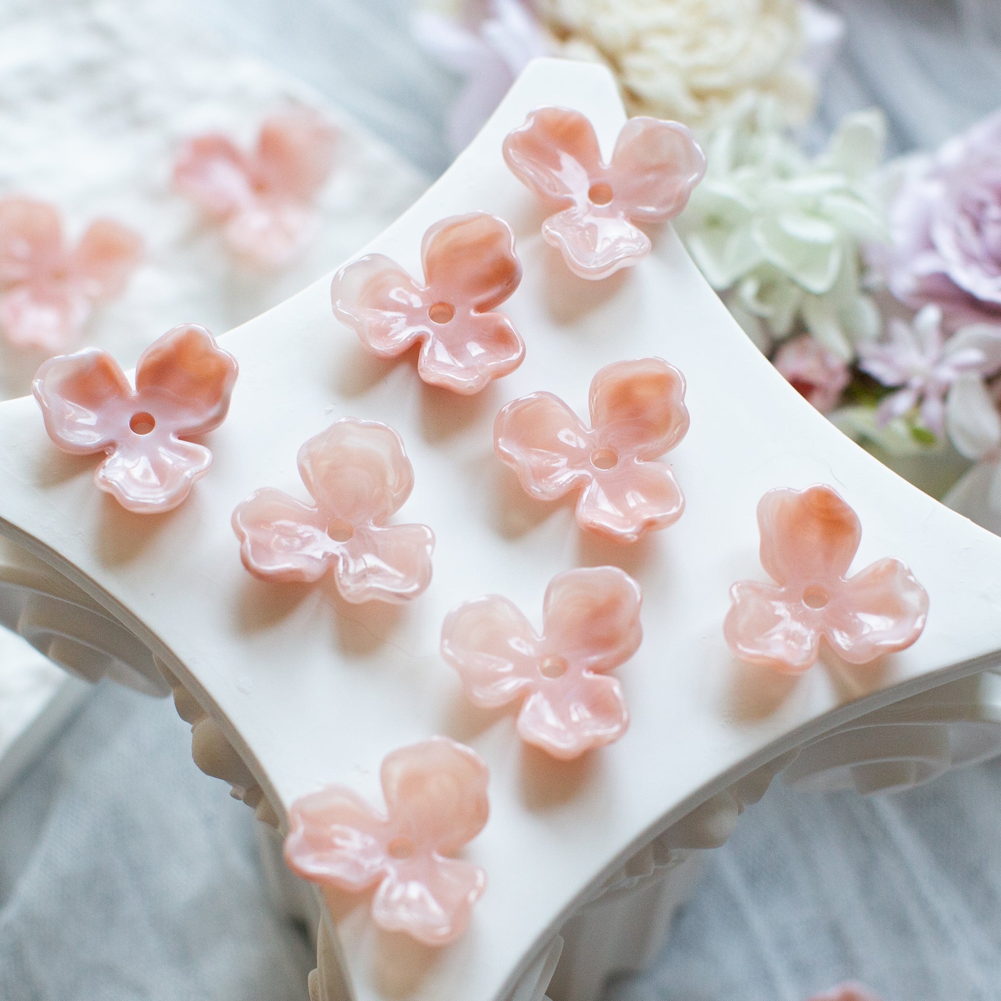 *6個* 樹脂フラワービーズ ミルクピンク フラワーチャーム フラワーカボション PS-0057